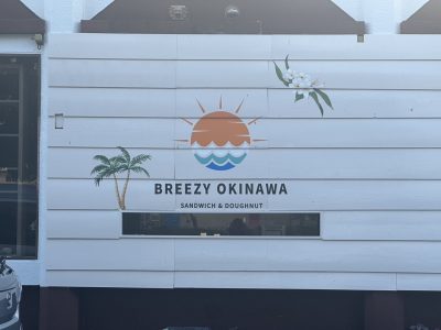みどり町にオープンしたサンドウィッチとドーナツのお店BREEZY OKINAWAの手書き看板、カッティングシート制作致しました。